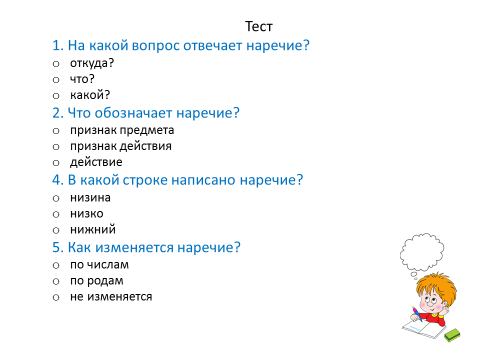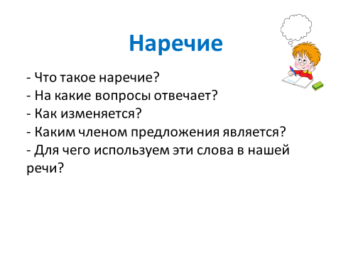 - учащиеся научатся распознавать наречия