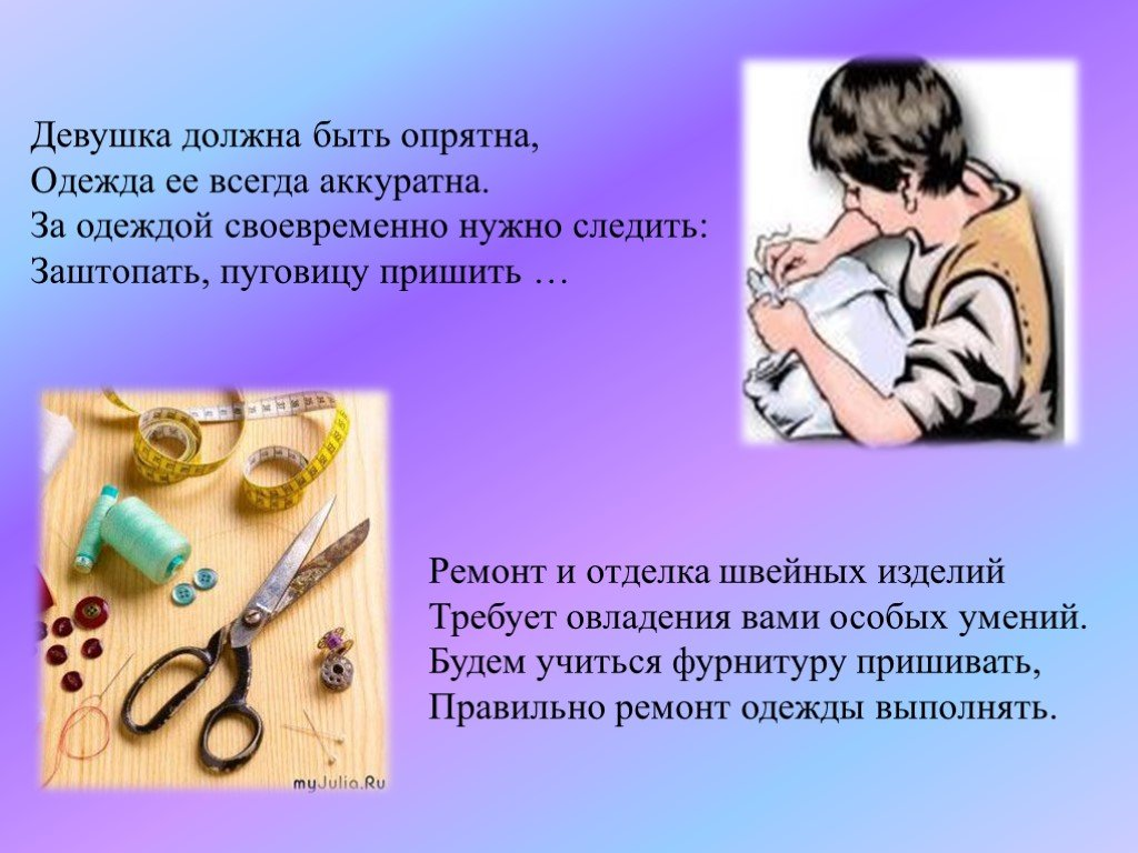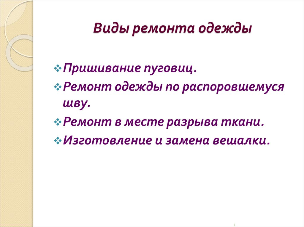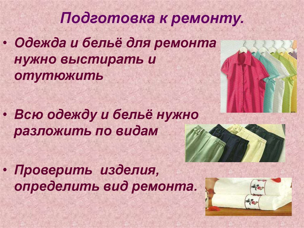 Какую тему мы изучали на прошлых уроках? (ремонт одежды), (1 слайд)