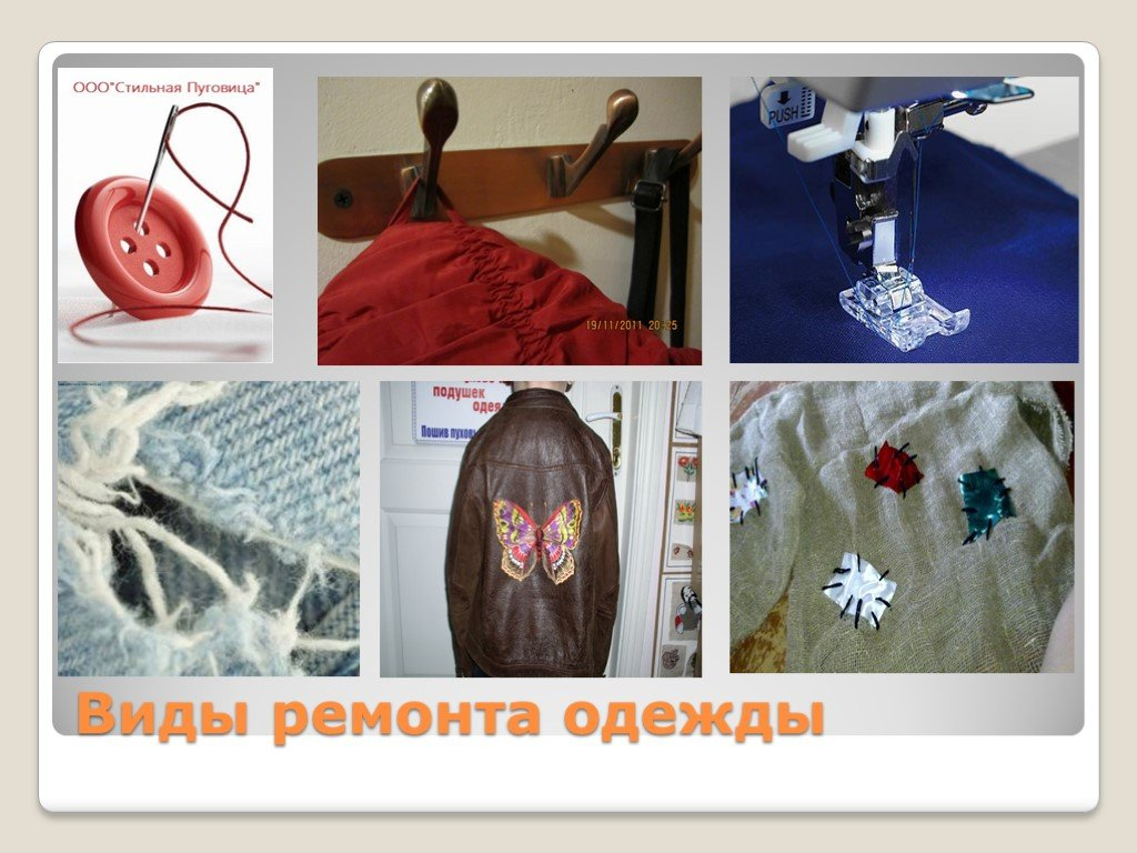 С какими видами ремонта одежды мы познакомились? (пришивание пуговиц, ремонт по распоровшемуся шву, ремонт в месте разрыва ткани)