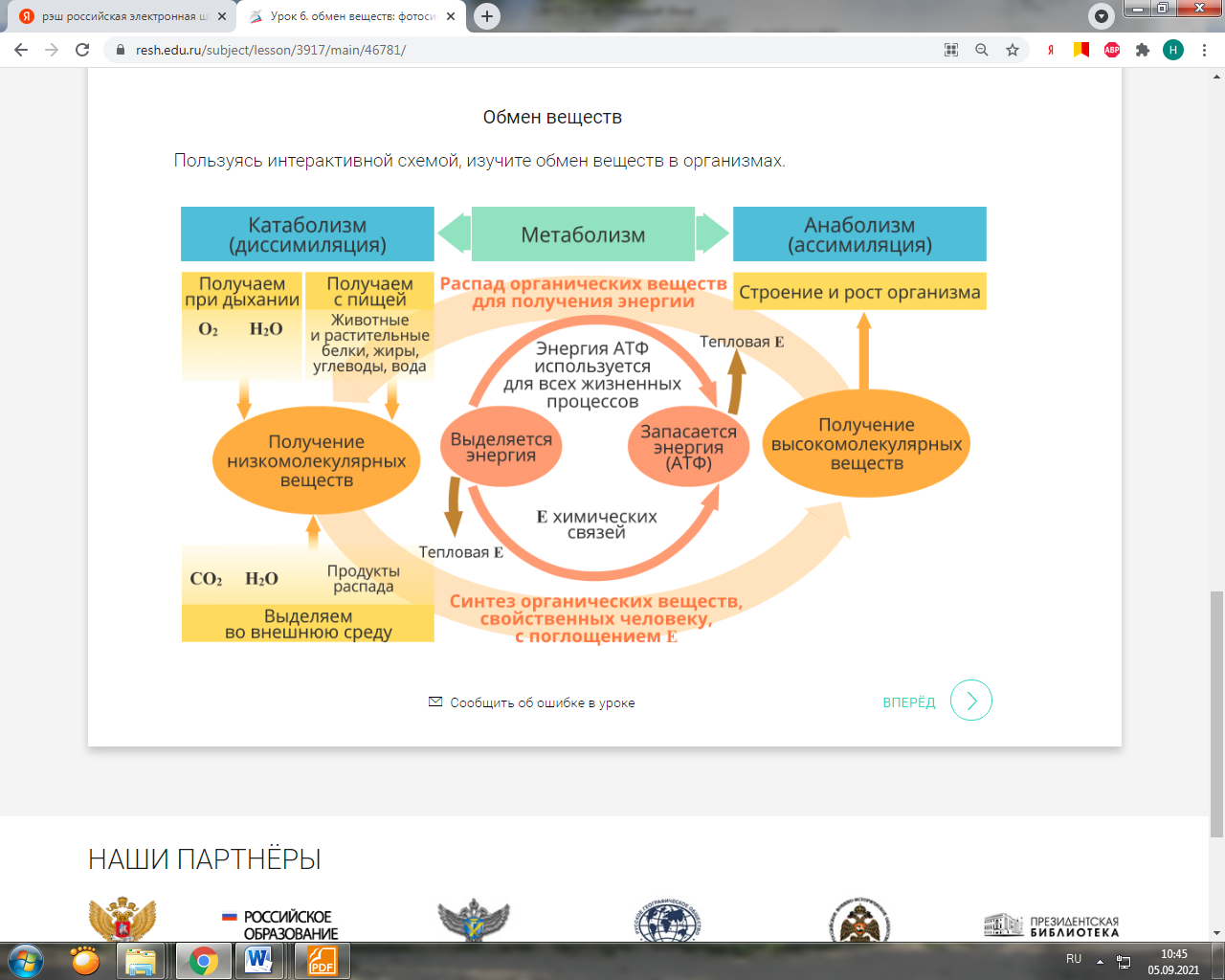 Фото 5. РЭШ. Урок «Обмен веществ в клетках»