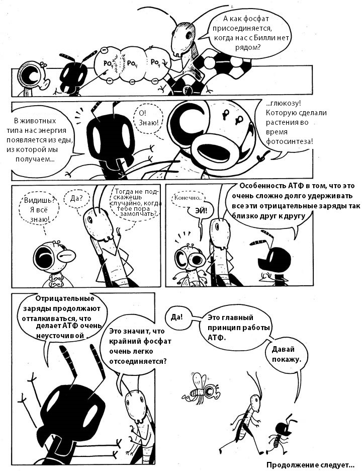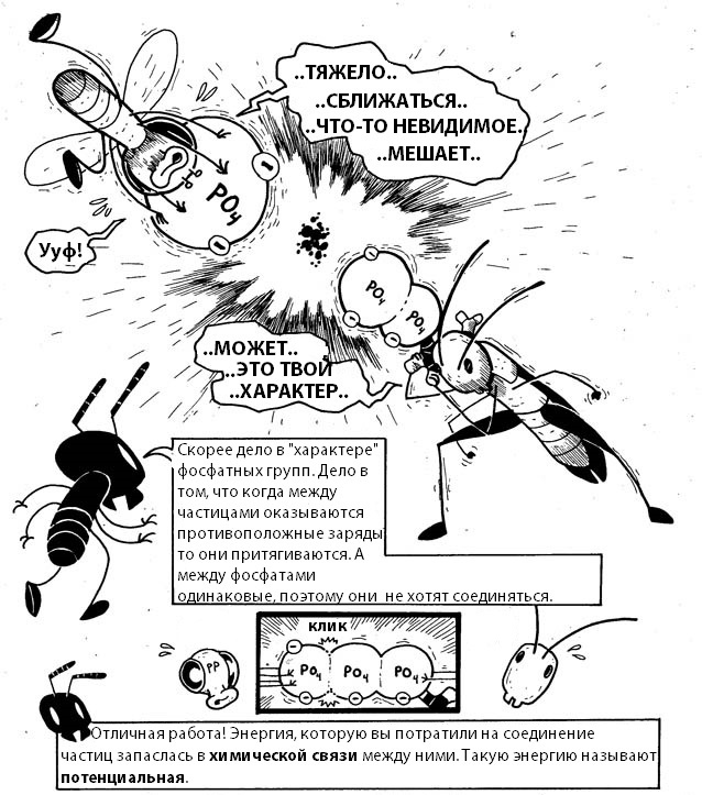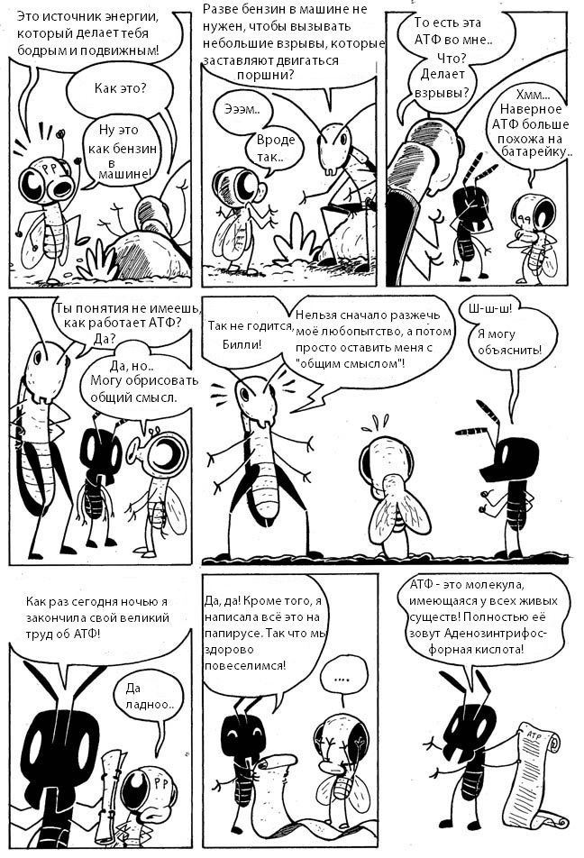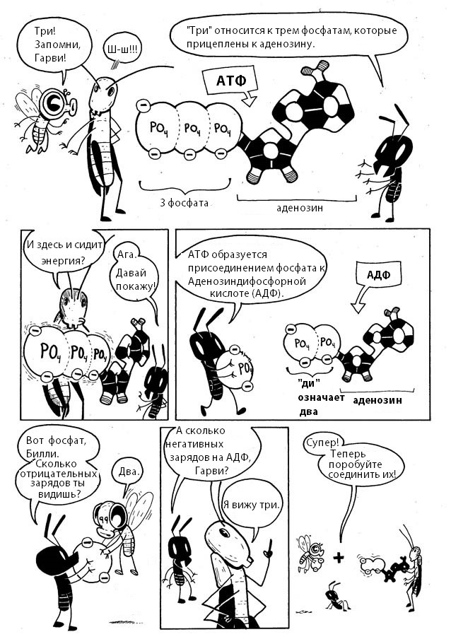 - Но сначала давайте выясним, каково значение энергии в жизни клетки. В этом нам с вами помогут герои весёлого комикса – насекомые Эдна, Гарви и Билли. Внимательно рассмотрите рисунки и найдите ответ на вопрос: