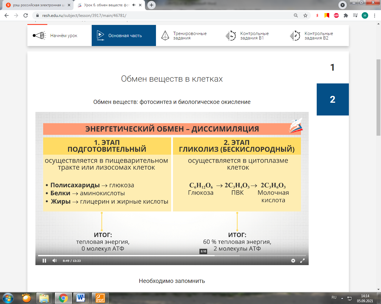 Фото 3. РЭШ. Урок «Обмен веществ в клетках»