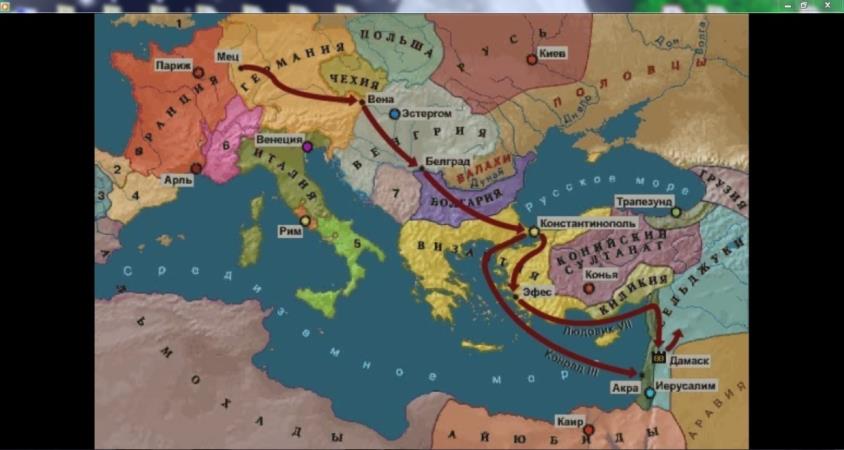 Приложение 5.Анимированная карта походов. Пути движения крестоносцев первого, второго, третьего и четвертого походов.
