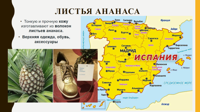 Слайд 10.Тонкую и прочную материю изготавливают изволокон листьев ананаса.