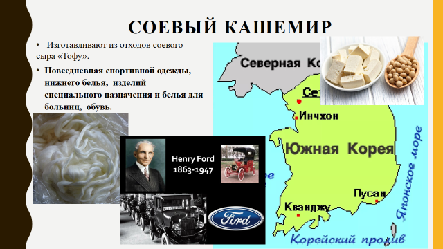 Это экологически чистый природный материал, создаваемый с помощью новейших биотехнологий. Появился этот материал еще в 30-е годы ХХ века. Костюмы из сои носил один из самых передовых деятелей того времени – создатель известной автомобильной марки Генри Форд.