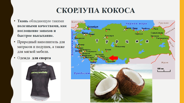разработана новейшую технологию превращения кокосовой скорлупы в ткань, обладающую такими полезными качествами, как поглощение запахов и быстрое высыхание