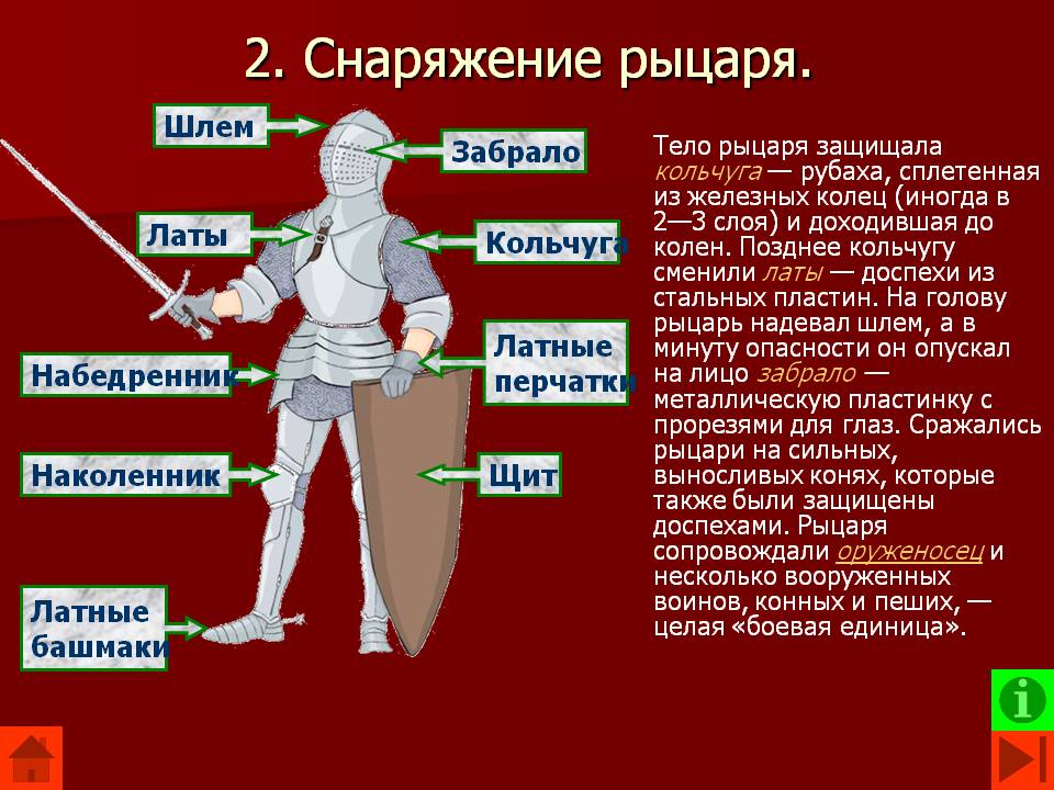 - Мы с вами уже поговорили о том, кто такой рыцарь. Ребята, а давайте вспомним, в чем же был одет он. (Ответы детей)