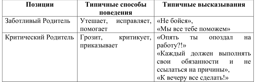 Взрослый – поведение, направленное сбор и логическую переработку информации, принятие обдуманных решений, без эмоций. Взрослый рассуждает, анализирует, уточняет ситуацию, разговаривает на равных, апеллирует к разуму, логике и т. п. Четкое понимание грани между желаниями моими и твоими…Хочу этого…Хочу пойти в кино. Хочешь пойти со мной? Даю тебе право выбора.