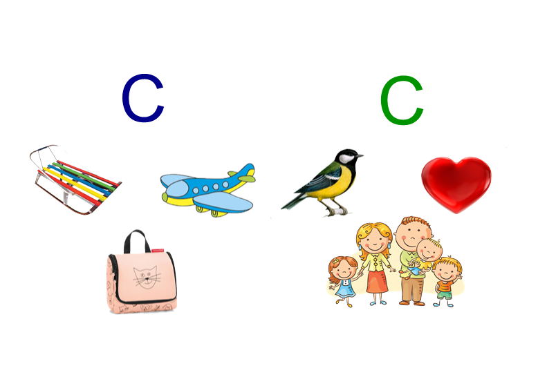 Картинки: Самолет, санки, сумка, синица, сердце, семья.