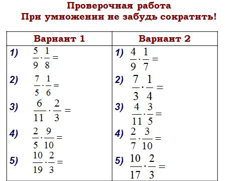 Цель урока:закрепить пройденный материал на умножение дробей.