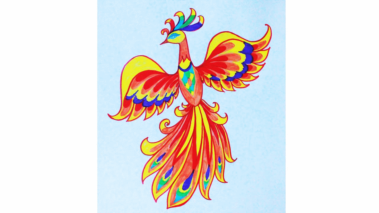 После того, как мы познакомились с этой волшебной птицей поближе, предлагаю вам все вместе сотворить одну большую сказочную Жар-птицу, которая будет приносить удачу и станет нашим талисманом.