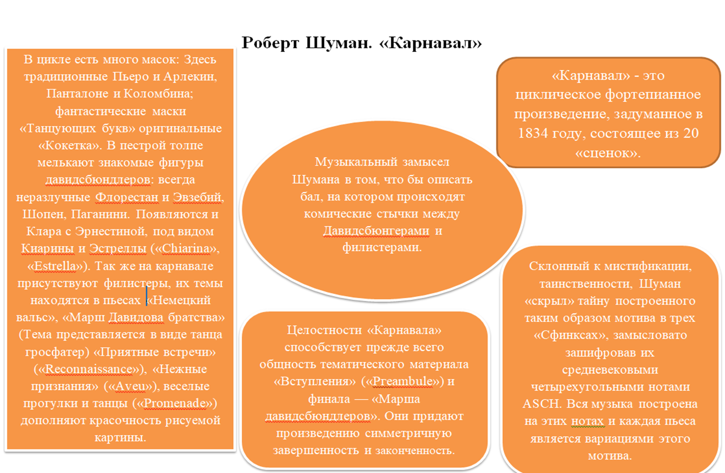 Пример кластера по теме «Шуман. Карнавал», вы можете ознакомиться в