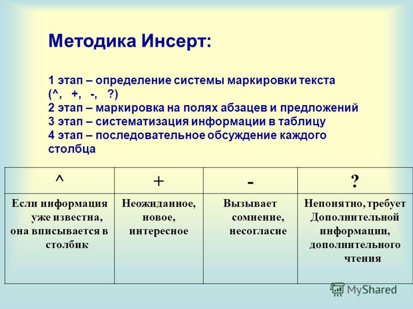 «Инсерт» - это метод литературного анализа, активного чтения.