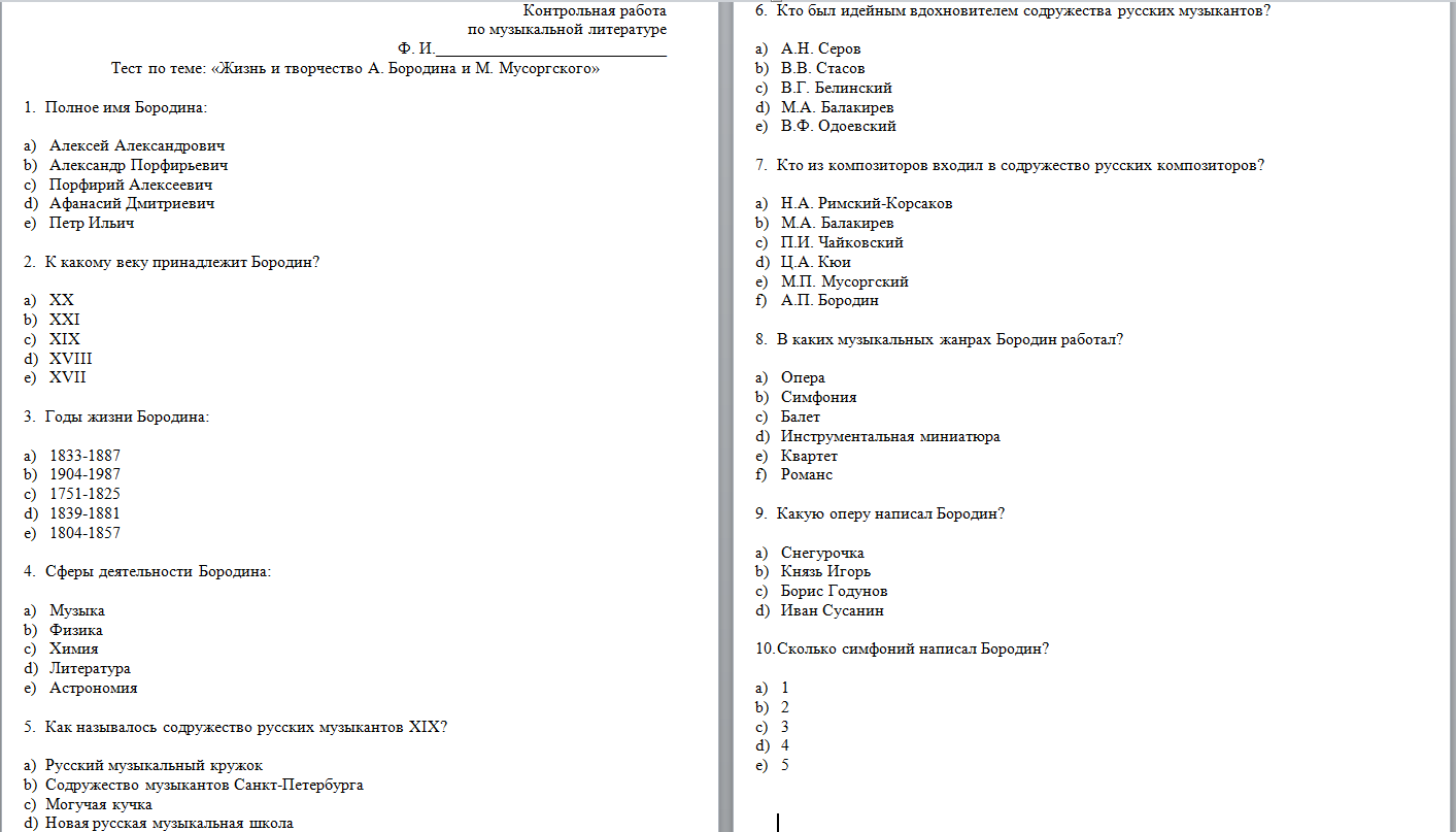 5 строка - Бородин