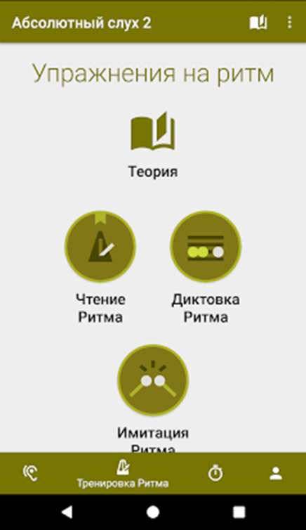 Мобильное приложение «Абсолютный слух». Для развития музыкального слуха, накопления слухового опыта, было создано мобильное приложение «Абсолютный слух». В данном приложении, ученик может научиться отличать лады, интервалы, определять ноты на слух и на нотном стане, развить чувство ритма. Так как мобильный есть у многих детей, ученики могут индивидуально развивать свои способности и исправлять пробелы в знаниях. А так же в приложении есть теоретический материал.