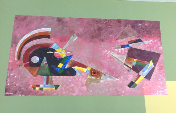 Предлагаемый продукт | Скопированное произведение Василия Кандинского «Чёрный и Фиолетовый» на школьной стене, как украшение интерьера. |