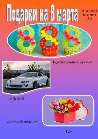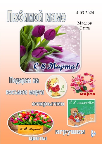1.Творческая игра "Создание обложки для газеты или журнала, посвященных 8 марта" (27 февраля 2024)