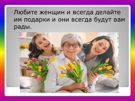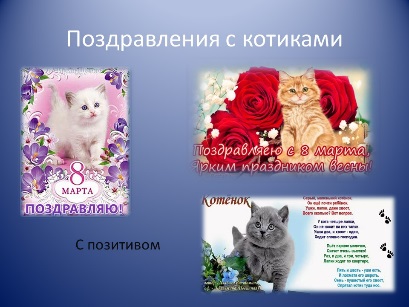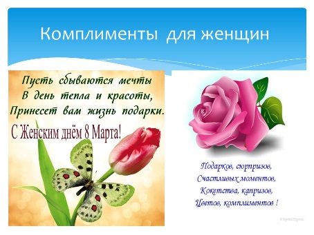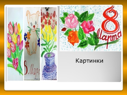 2-5 слайды: картинки, поздравления или подарки к 8 Марта;