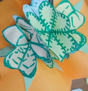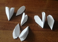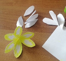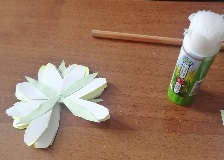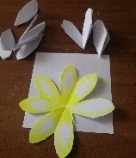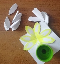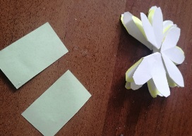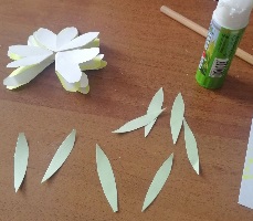 21.вырезать 8 листочков | 22.приклеить по 4 лепестка с одной стороны поделки