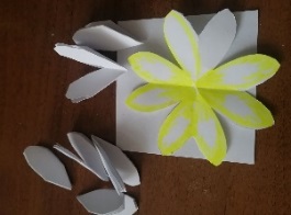 | 14.Соединить последний лепесток с первым | 15.Оформить все заготовки цветков