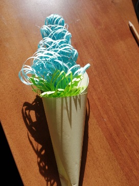 | 18.Нарисовать контур листочка и вырезать его | 19. Приклеить листочек к поделке