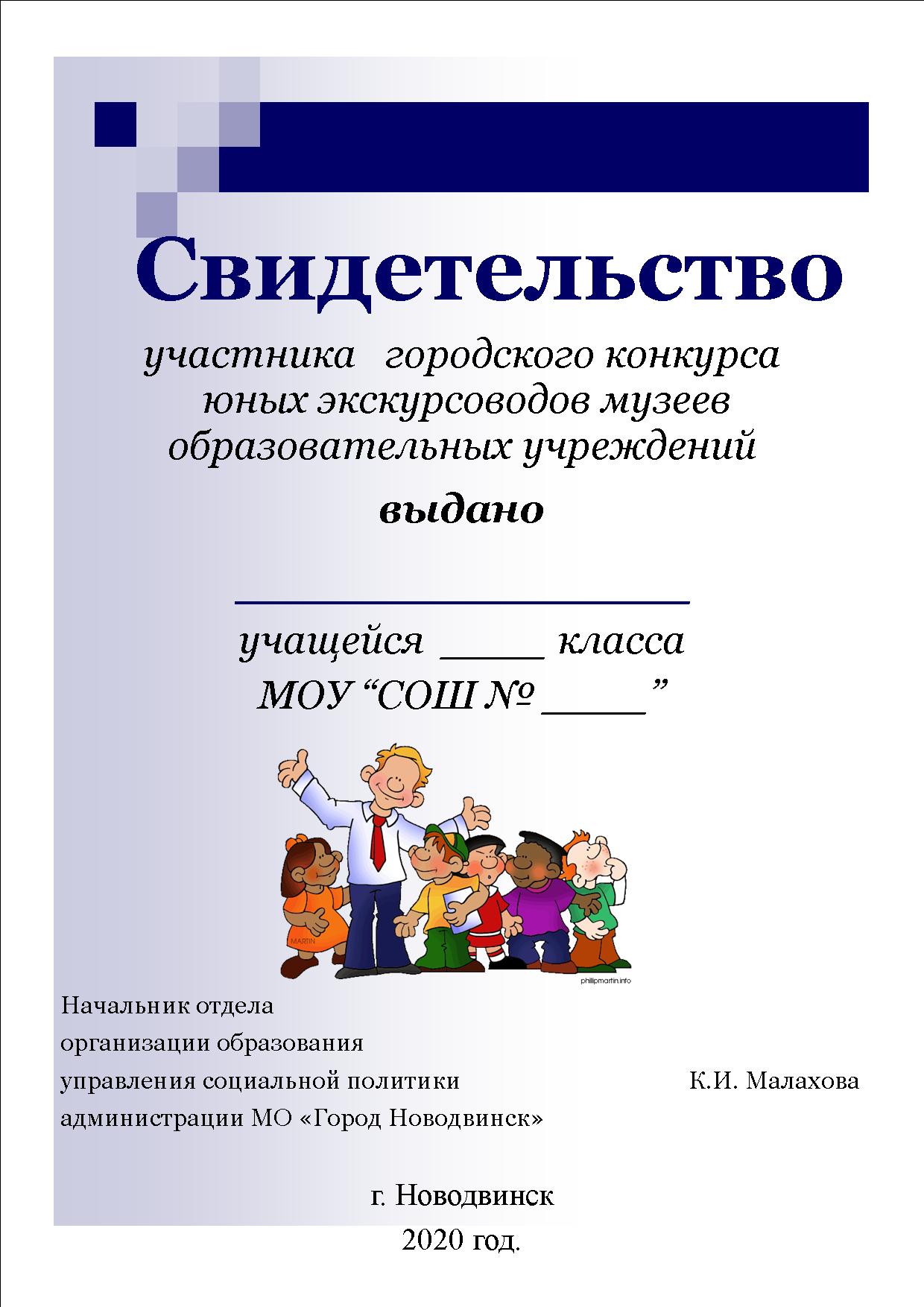Приложение №2. Свидетельство участника городского конкурса юных экскурсоводов.