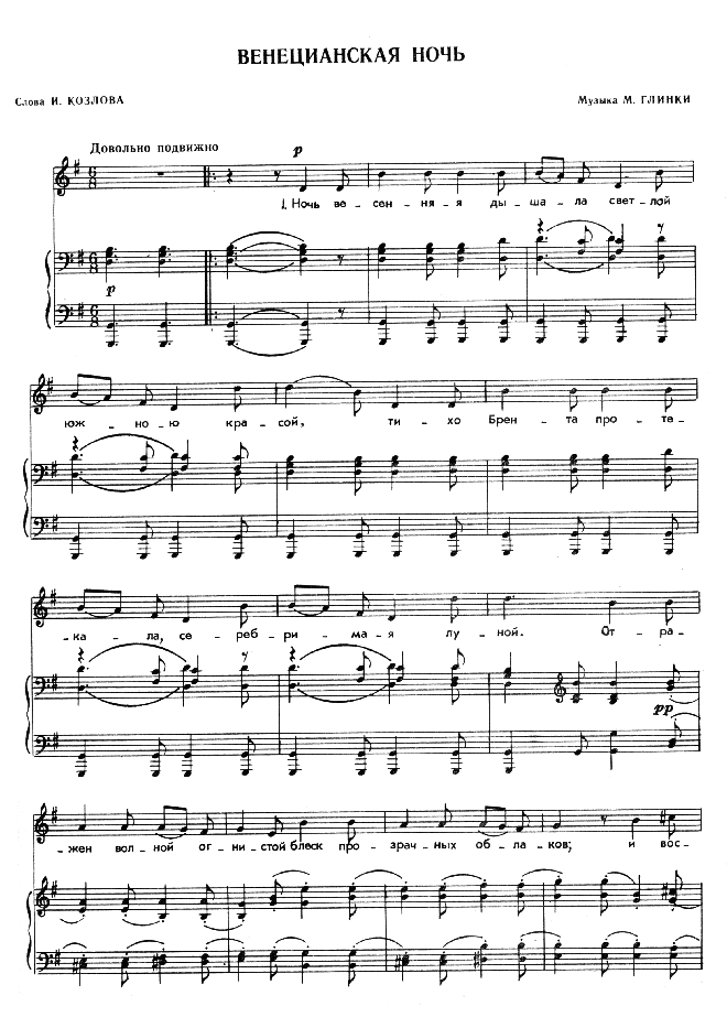 Гармоническая поддержка встречается в камерной и романсовой музыке, например, «Венецианская ночь» М.И. Глинки.