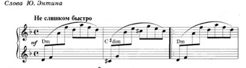 - разложение аккорда в виде гармонической фигурации (Е. Крылатов «Крылатые качели»)