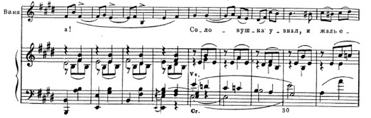 - характер подголосков (М.И. Глинка «Песня Вани» из оперы «Жизнь за царя»);