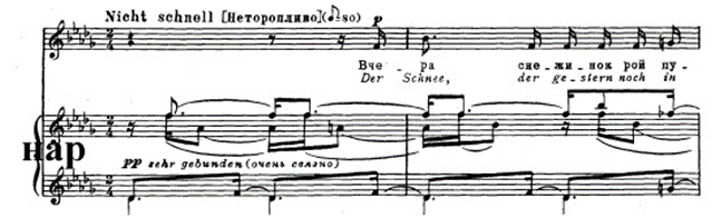 Вокальная музыка неразрывно связана со словом, с живой человеческой речью. Проникновение в круг образов стихотворения, в его речевые интонации является непременным условием для создания осмысленного аккомпанемента.