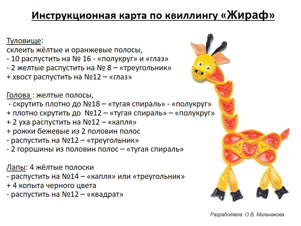 Инструкционная карта по квиллингу для детей младшего школьного возраста «Жираф»