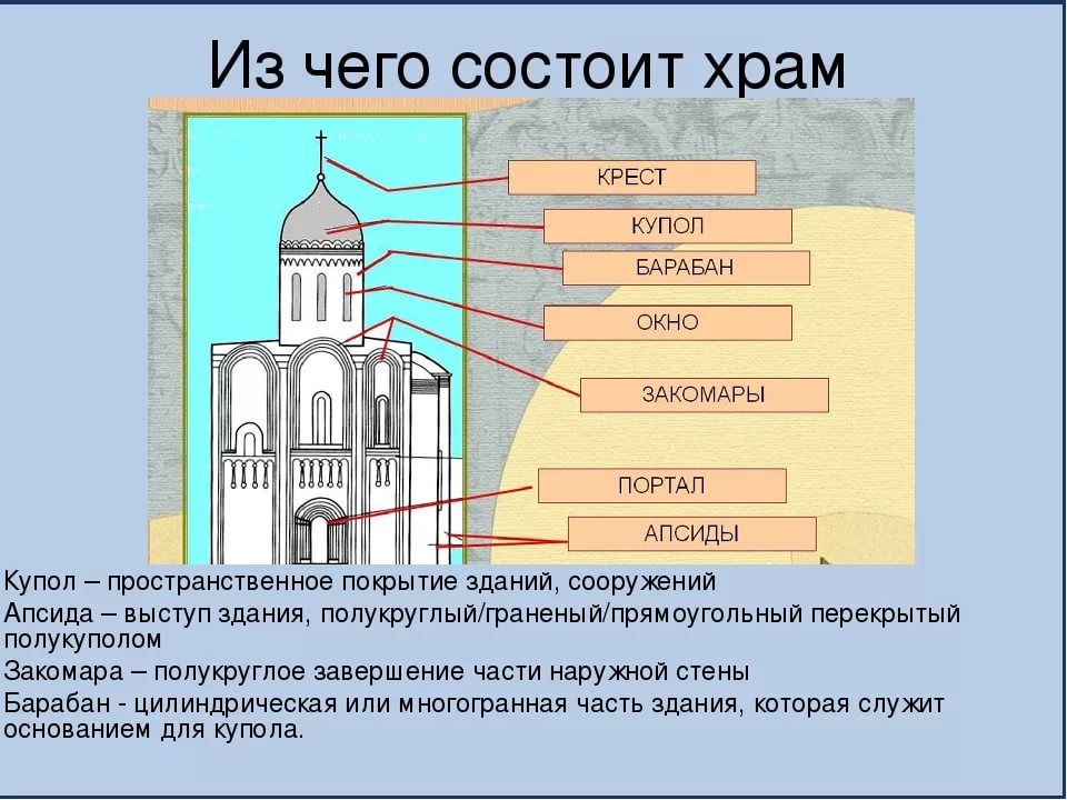 Купол – сводчатое перекрытие в виде свечи, символа молитвы.