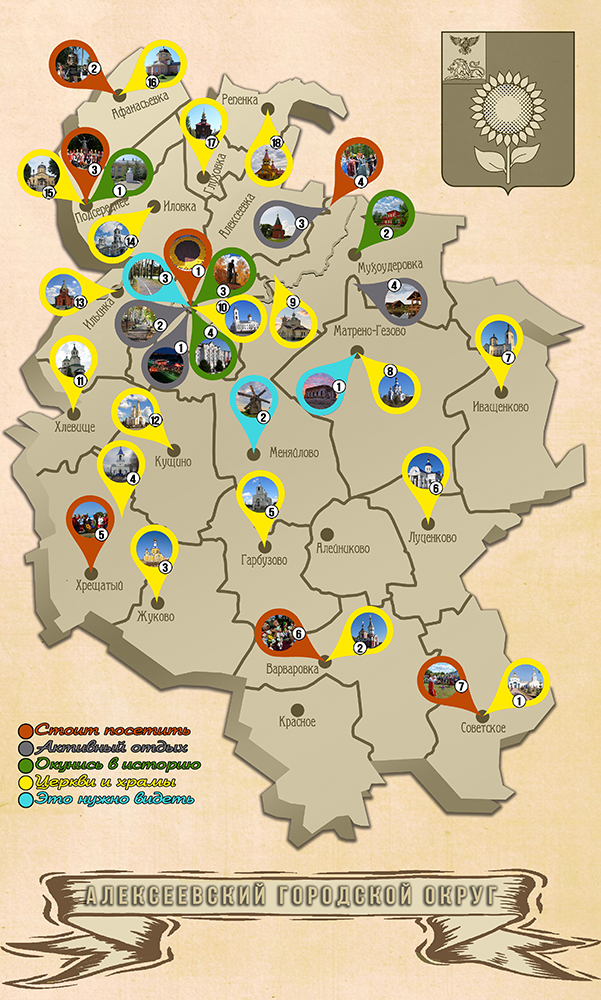 Что символизирует подсолнух? Кто является автором герба Алексеевского городского округа?