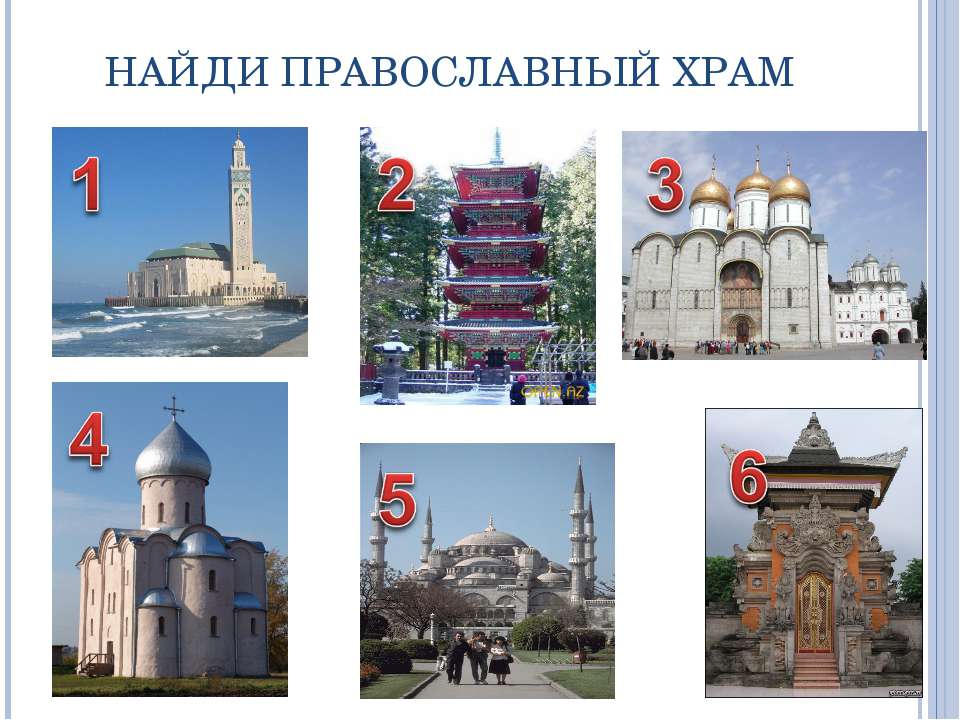 Найдите православные храмы и запишите в квадратах цифры, под которыми они находятся.