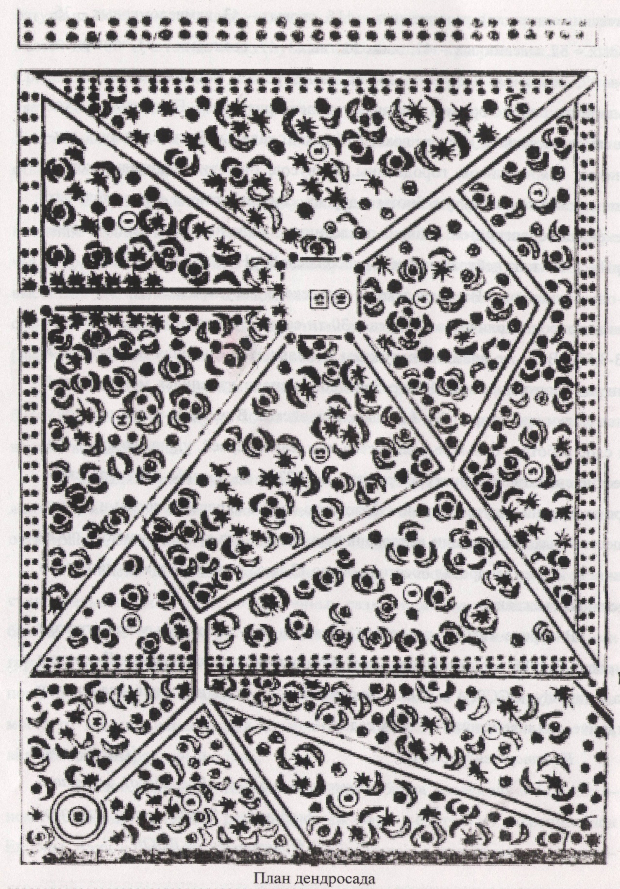 В плане дендросад выполнен в классическом стиле и состоит из прямых дорог, по периметру высажены различные кустарники. Разбит он на 15 участков с двумя небольшими бассейнами и альпийскими горками(Приложение 1). В дендрарии проводится постоянное орошение, в зависимости от потребностей растений.