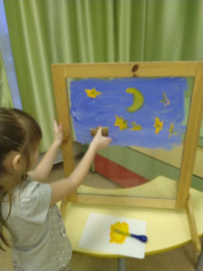 ребёнок имеет представления об этапах изобразительной технологии рисования на мольберте и умеет применить их в процессе продуктивной деятельности.