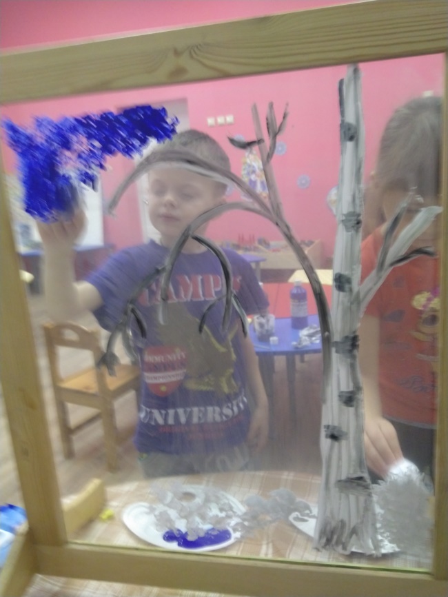 В отличие от рисования по бумаге, стекло дарит новые визуальные впечатления и тактильные ощущения. Ребят захватывает сам процесс рисования: краска скользит мягко, ее можно размазывать и кистью, и пальцами, так как она не впитывается в материал поверхности и долго не высыхает. Копии сделанных рисунков можно сохранять, осторожно приложив к сырому рисунку лист бумаги (если рисунок уже подсох, слегка увлажните его, побрызгав водой из пульверизатора).