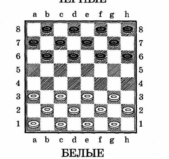 1.Ребёнку предлагается расставить шашки в количестве 24 штук двух цветов для дальнейшей игры.