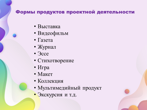 Формы продуктов проектной деятельности