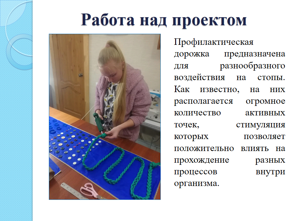 Первое , что мы сделали изучили материал по этой теме. Проанализировали. И создали 1 Профилактическую дорожку предназначенную для разнообразного воздействия на стоп.