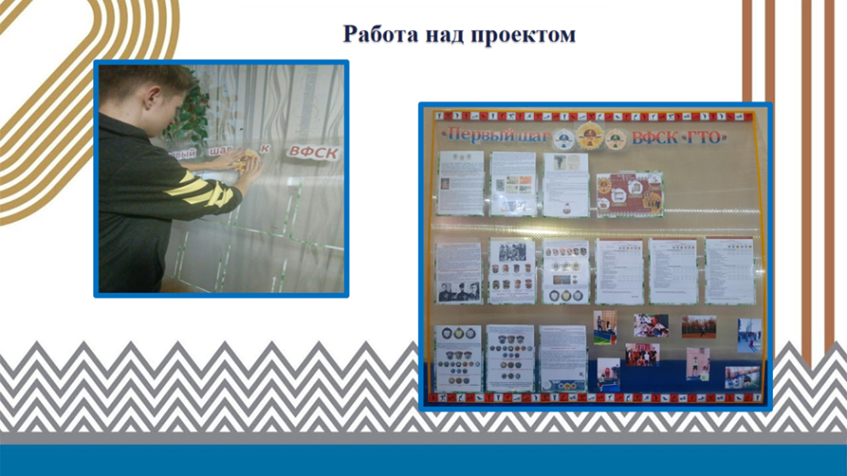 Наша задача была создать информационный стенд на 1 этаже для ребят начальных классов. Первое , что мы сделали подобрали материал (карбонат). Второе подготовили информацию, которую будем вешать и менять в течении каждого учебного года. Далее оформили стенд. Ну и повесили на этаже. Цель была привлечь детей. Ознакомить о движение ГТО. Выполнить на знак. И в этом году мы видим рост в начальных классах. Ученики нашей школы получили 91 золотой знак. Что больше половины детей справились из начальных классов.
