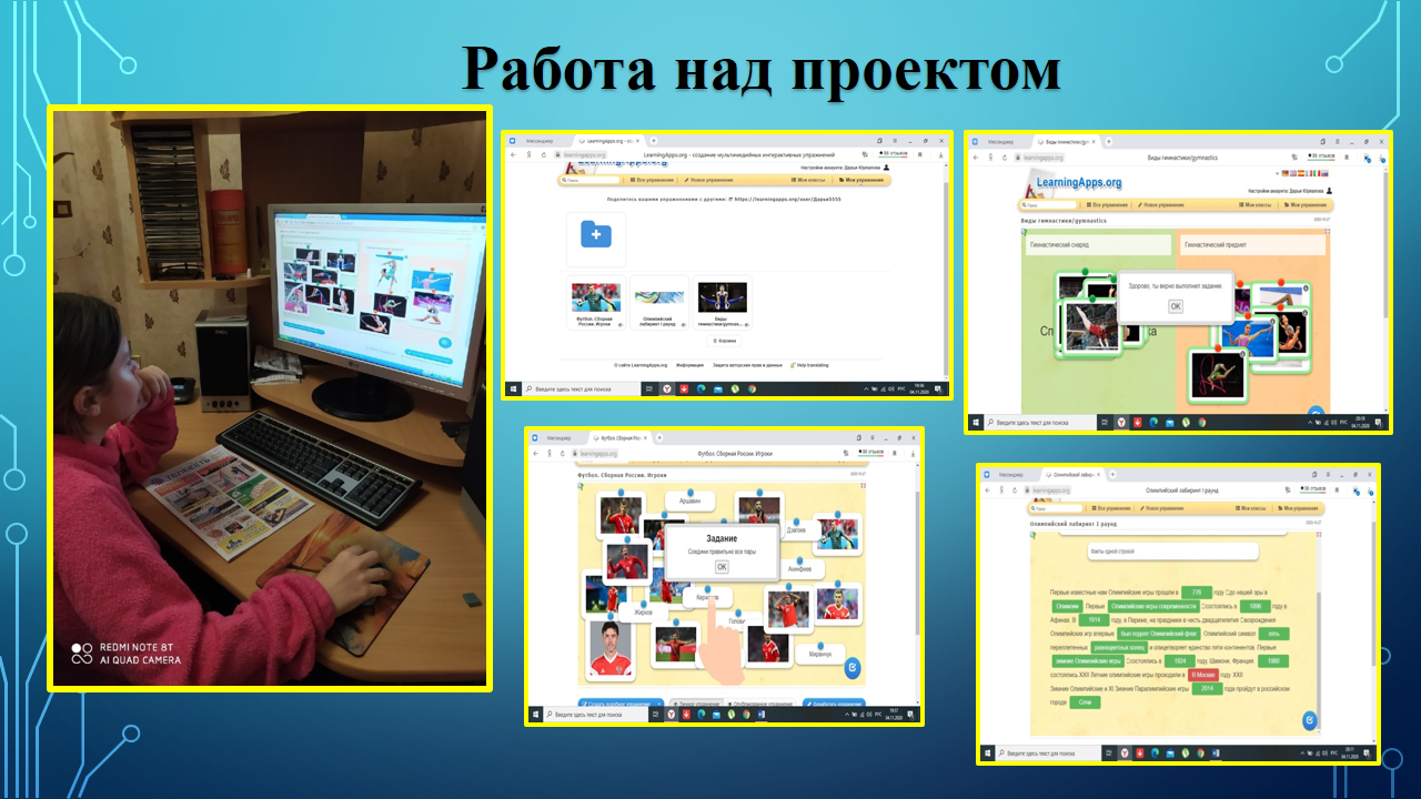 Цель проекта была создать условия для формирования интеллектуальных способностей по средствам интерактивных игр на уроках физической культуры через программу LearningApps. Положительной стороной игры является то, что она способствует использованию знаний в новой ситуации, таким образом, усваиваемый учащимися материал проходит через своеобразную практику, вносит разнообразие и интерес в учебный процесс. Можно составить базу игр по всем разделам физической культуре, для использования контрольных, домашних заданий. Вход был с использованием через QR код. Дети сканировали и заходили решали онлай. Так же мы в пандемию использовали разработанные онлайн тесты , разработанные в гугл форме. Все результаты обрабатывались онлайн и автоматически приходили на почту.