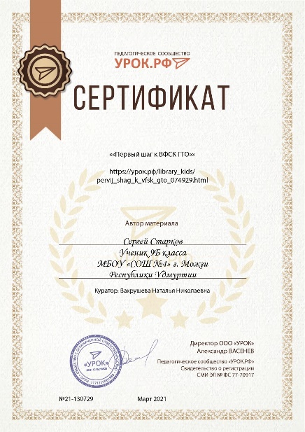 Второй проект написал Старков Сергей. Тема проекта «Первый шаг к ВФСК ГТО».