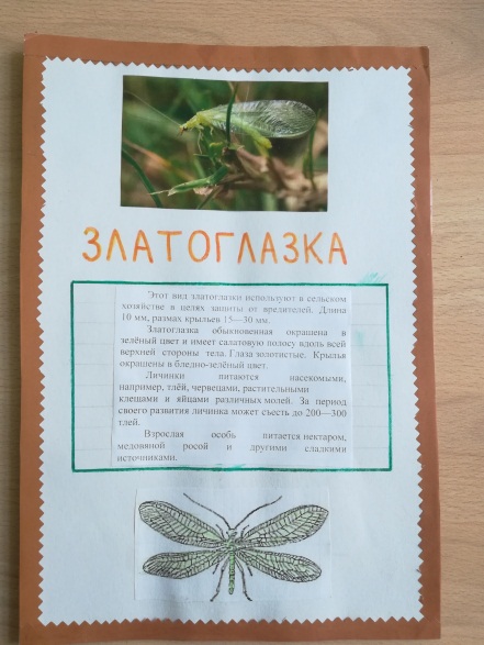 - составление краткого сообщения о заданном насекомом;