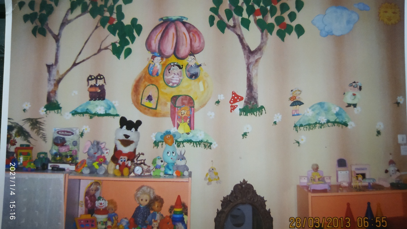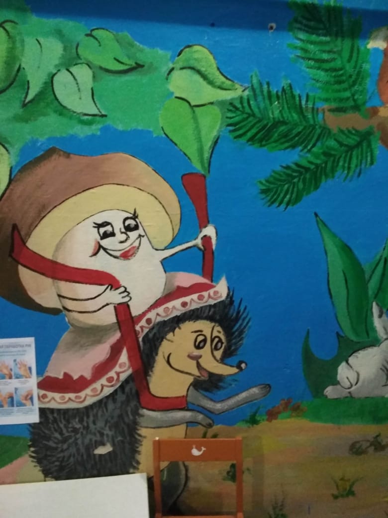 Когда переступаешь порог детского сада, будто возвращаешься в детство: здесь чувствуешь такие привычные для каждого человека запахи, слышишь заливистый детский смех и шум неугомонных голосов, со стен на тебя ласково глядят нарисованные герои сказочного мира. Роспись стен это работа родителей.
