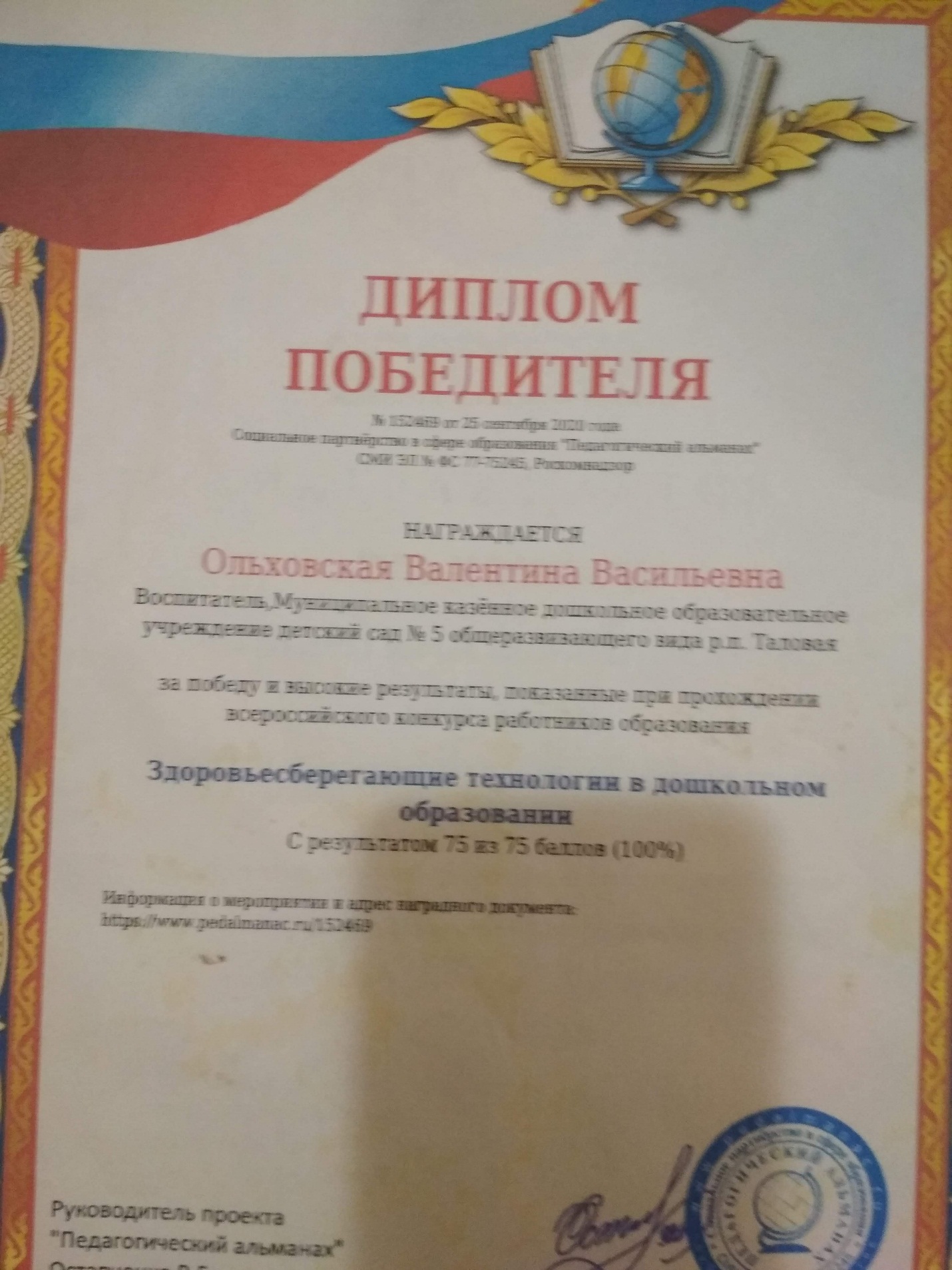 В 1982 году методист ВОИПКиПРО Тихонова С.В. посетила Таловские детские сады, осмотрела их оснащение учебным материалом, кадровый состав и решила на базе ясли-сад «Родничок» провести семинар для воспитателей района с показом методики проведения комплексных и тематических занятий по развитию речи. Эту методику уже начали внедрять Воронежские детские сады в порядке эксперимента. Заведующая поручила провести их воспитателям средней группы Петровой И.П. и Желтовой О.М. старшая группа. Анализируя данное занятие, Тихонова С.В. дала им высокую оценку. А заведующая детского сада Пустыльникова Г.К. за организованную творческую активность педагогического коллектива была награждена значком «Отличник народного просвещения».