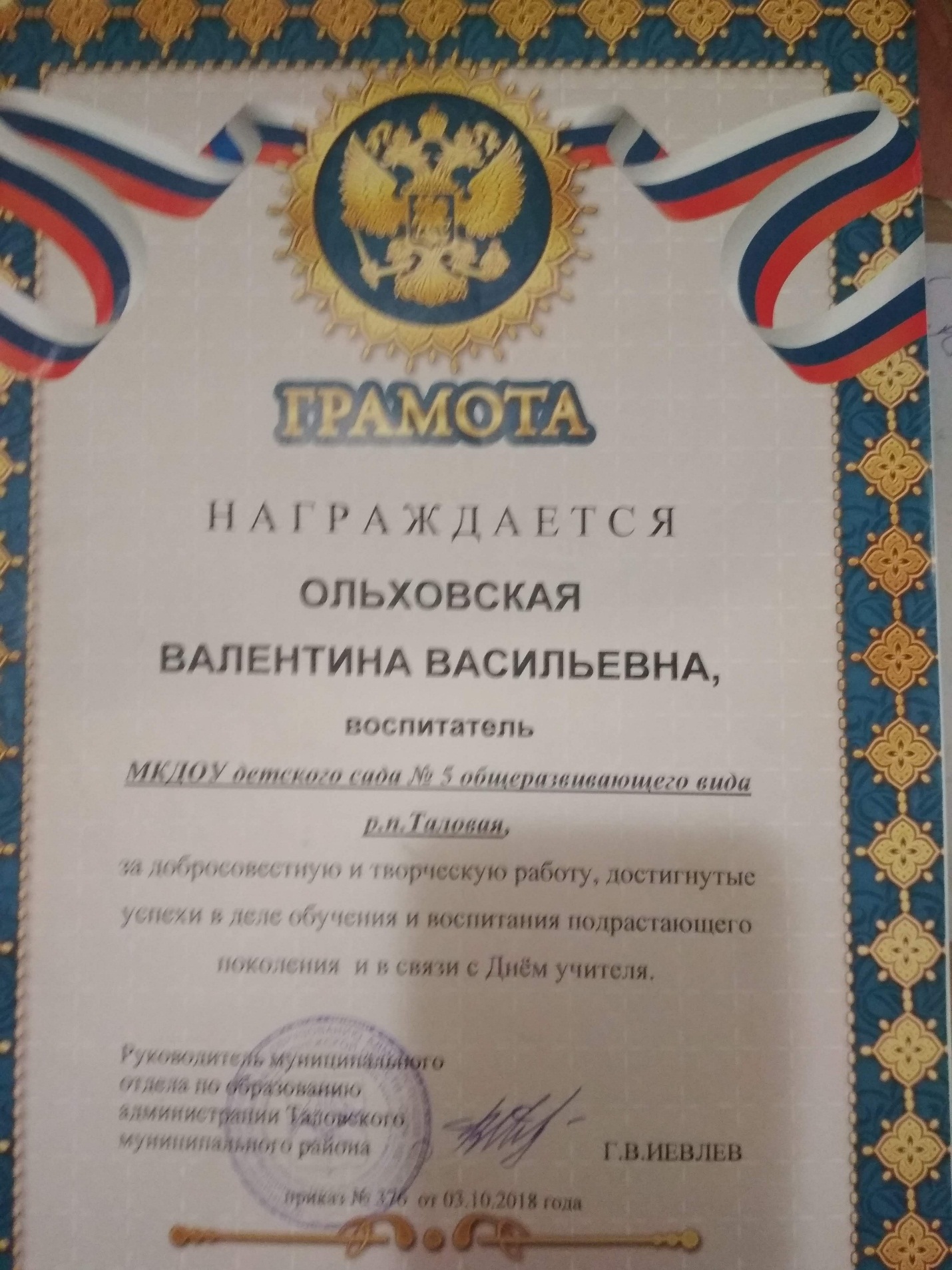 Муниципальное казенное дошкольное образовательное учреждение детский сад №5 общеразвивающего вида р.п. Таловая
