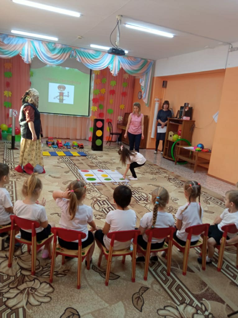 Ведущий: Поняла, Баба Яга? А сейчас проверим, как Баба-Яга запомнила цвета светофора.