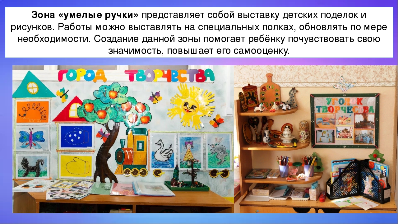 | Творческая зона, где отображаются работы, выполненные детьми: проекты, рисунки и т.п. |