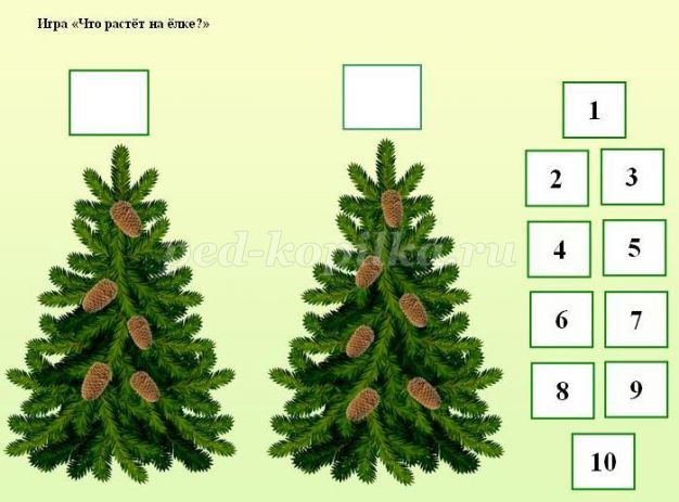 Дидактическая игра «Что растёт на ёлке?» Раздел «Количество и счёт»